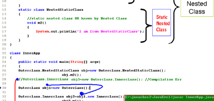 Nested Classes The Types of Classes: Top level classes Nested classes Static classes Inner classes Anonymous classes Local classes Nested Interface Multi Nesting Access GUI Example without Inner Class GUI Example with Inner Class...