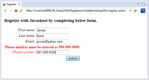 Struts 2.x : [A Framework from ASF] :: Validation Using XML